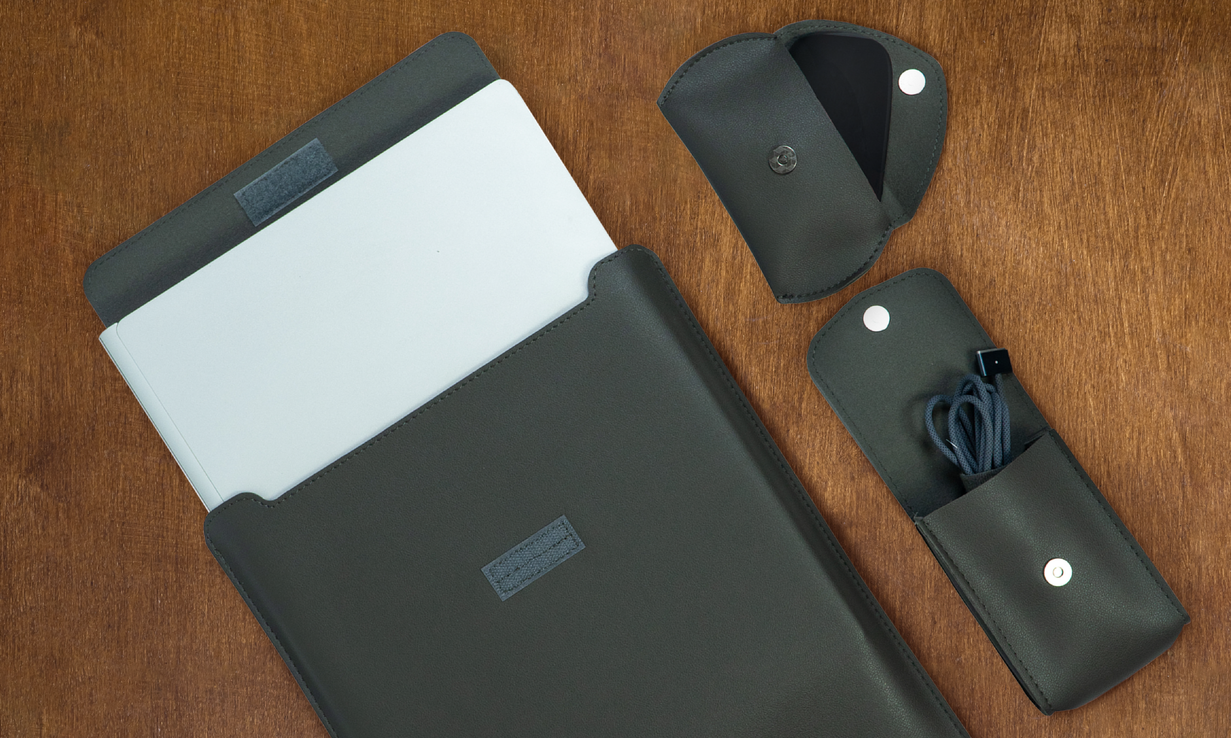 La funda Work-Station tiene todo lo que necesitas para mantener tu laptop, mouse y cargador organizados y protegidos.